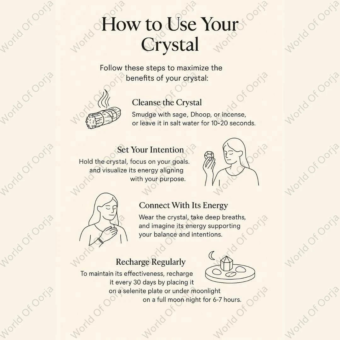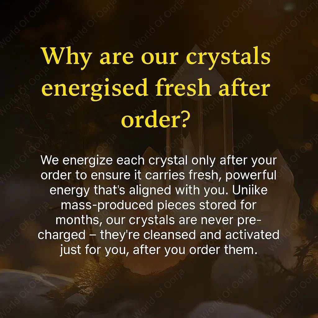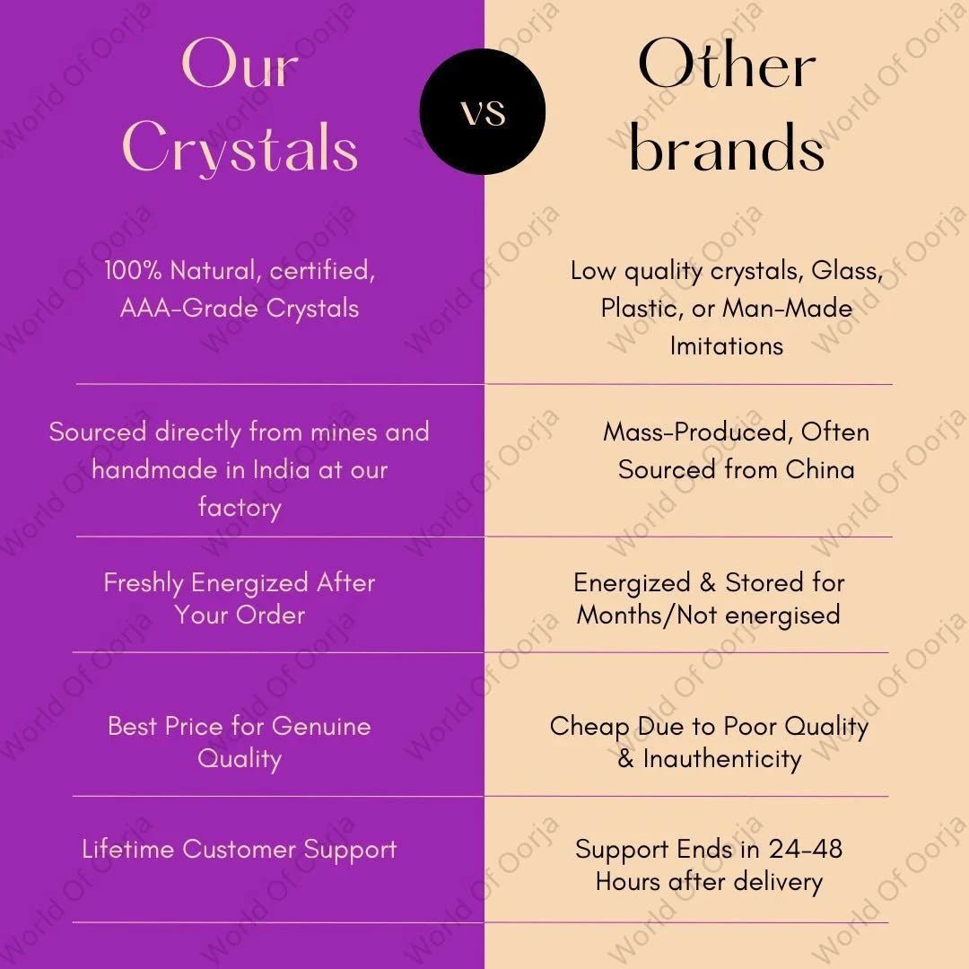 Every crystal you see at World of Oorja passes through The Oorja Standard™ — our proprietary 4-step verification process ensuring only the most authentic, energetically vibrant crystals reach you.