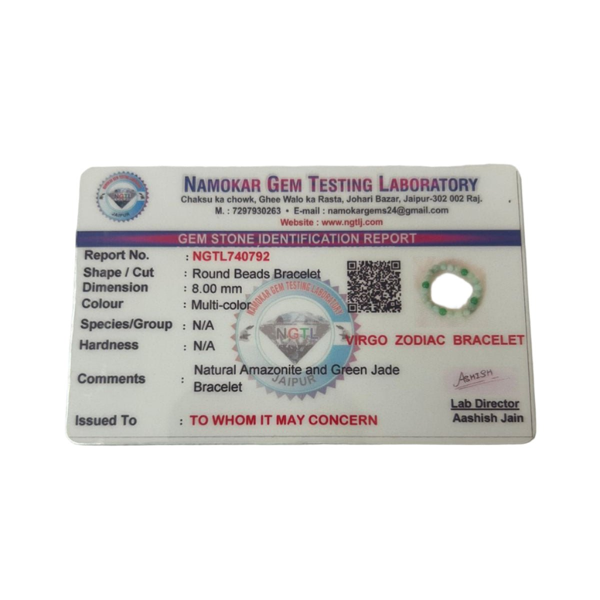 - A lab certificate of authenticity