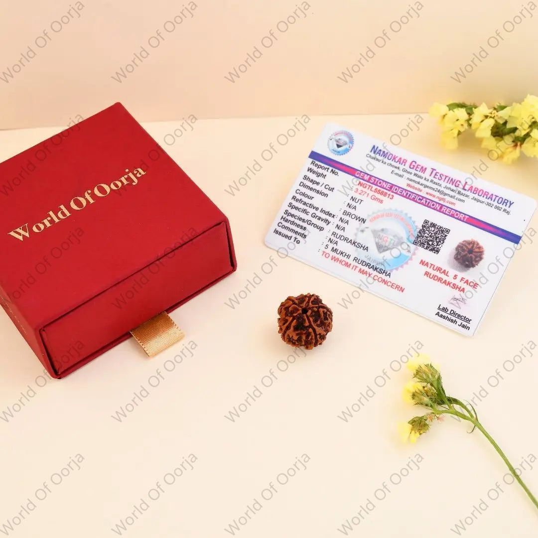 Embark on a journey with the revered 5 Mukhi Rudraksha, a certified Nepal Rudraksha. Symbolizing the five elements - sky, air, fire, water, and earth - this Rudraksha's ruling planet is Jupiter (Brhaspati). As one of the most widely used Rudrakshas, it's accessible to all, enhancing self-confidence and mental power.