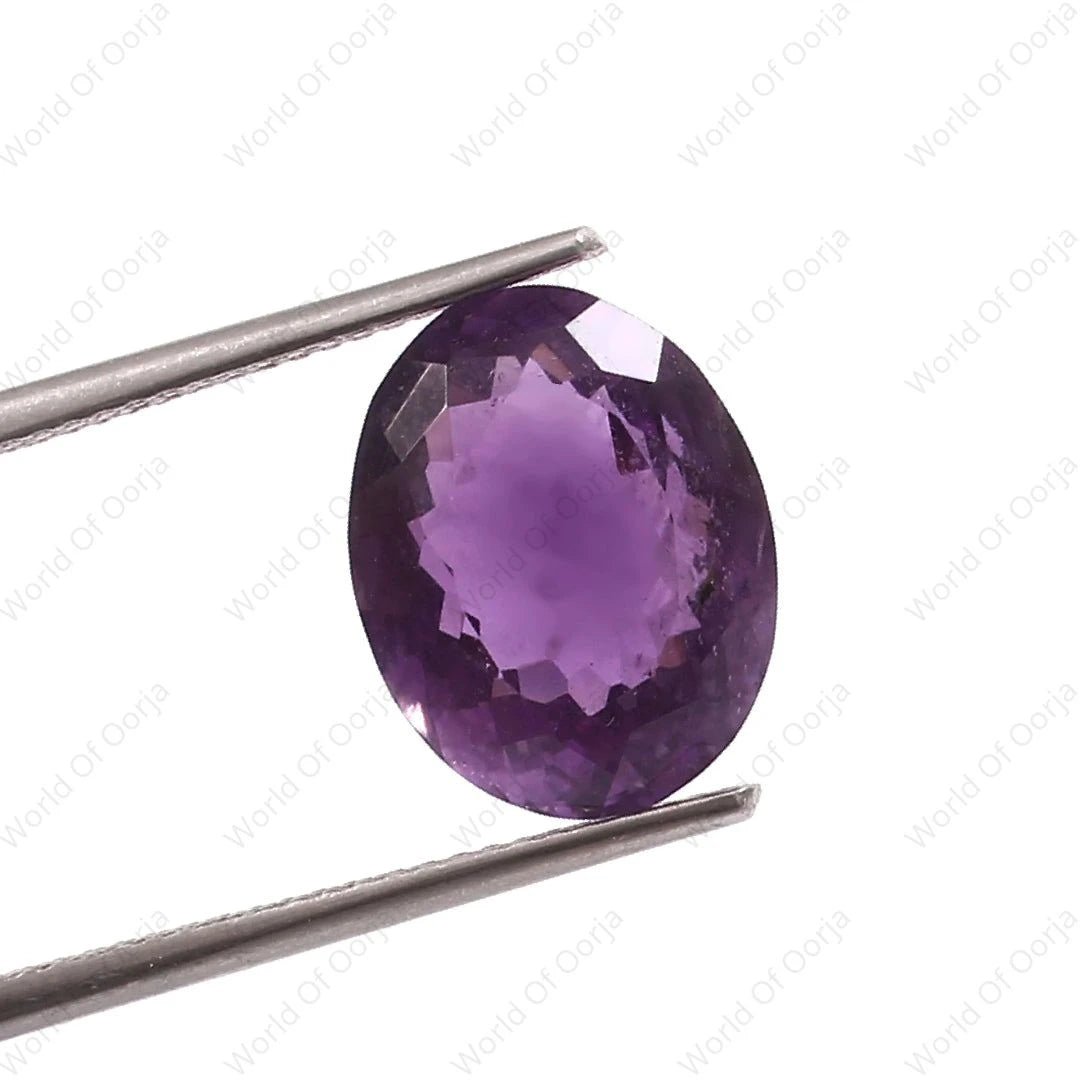 This 6.80-carat Amethyst diamond-cut stone, weighing 7.41 Ratti, boasts a deep purple hue, enhanced by its precise diamond cut. Known for its calming and protective properties, this Amethyst stone is ideal for both jewelry and energy work.