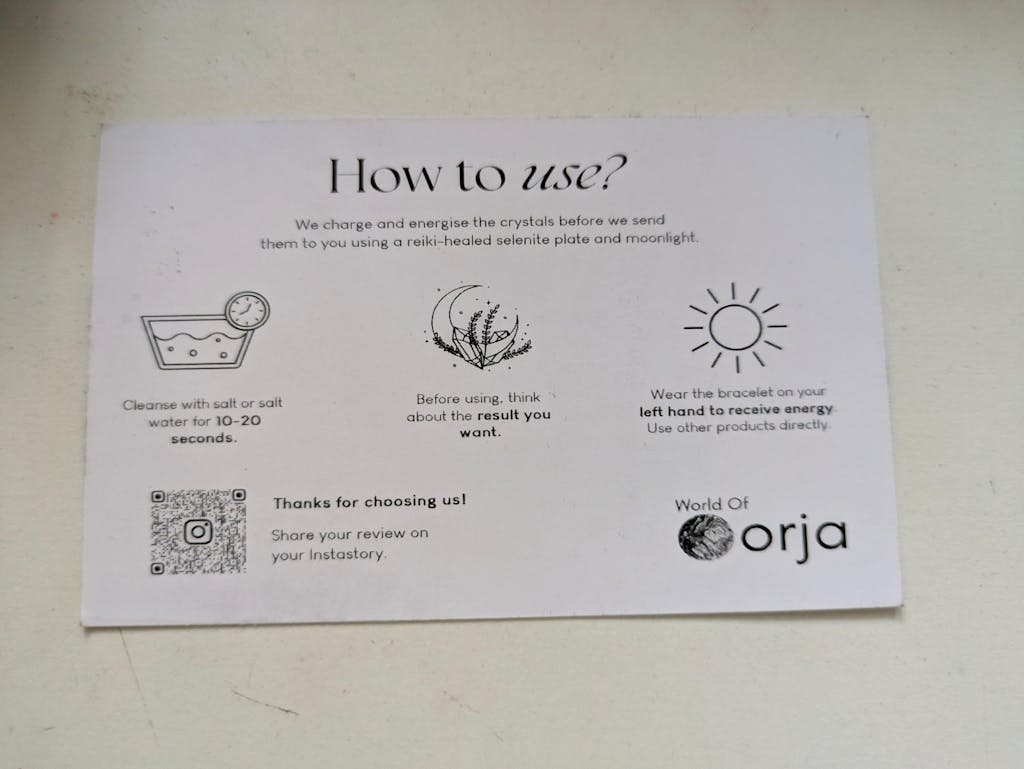 - Free crystal use + care instructions