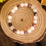 Open your heart to new love and romantic opportunities with the Love Attraction & Marriage Bracelet. This enchanting combination features Rose Quartz to invite love and compassion, Rhodonite to heal past emotional wounds, and Moonstone to enhance intuition and emotional connection.