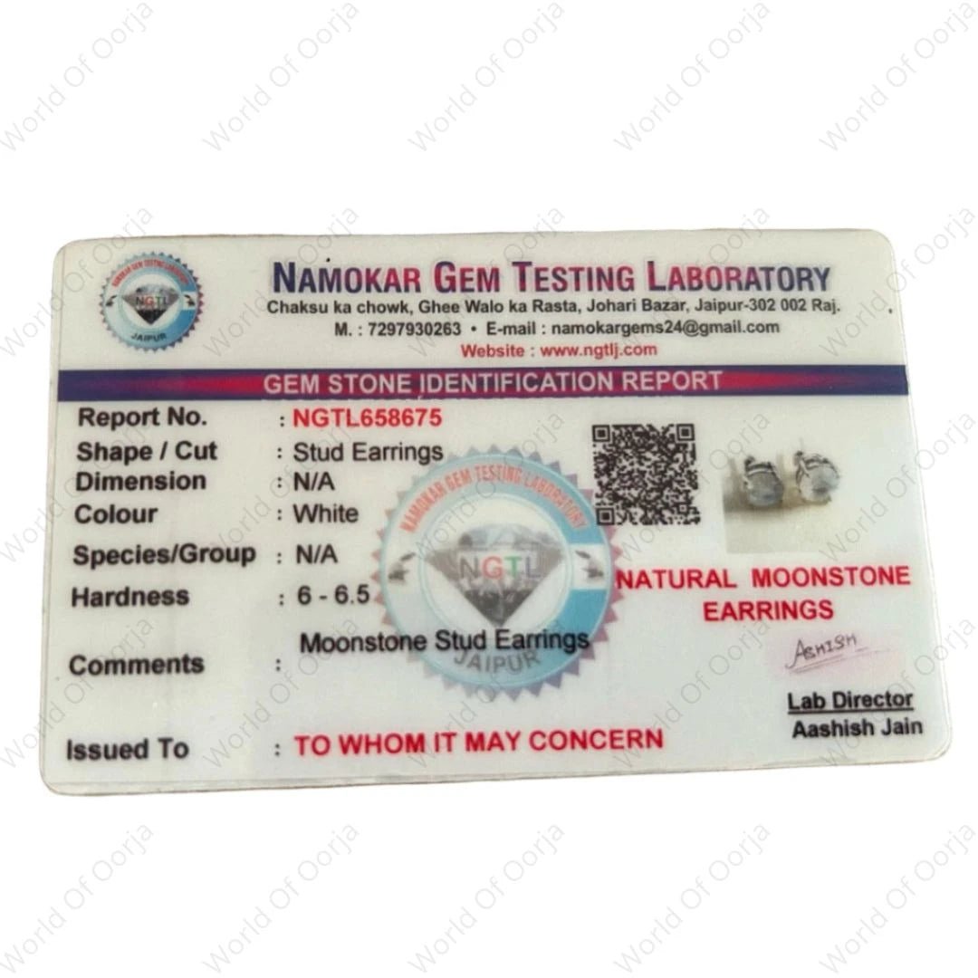 Note: The Rainbow Moonstone stud earrings are natural and handcrafted, so minor imperfections may appear. Each stone’s unique flashes of color, cracks, and lines are a testament to its authenticity and charm.