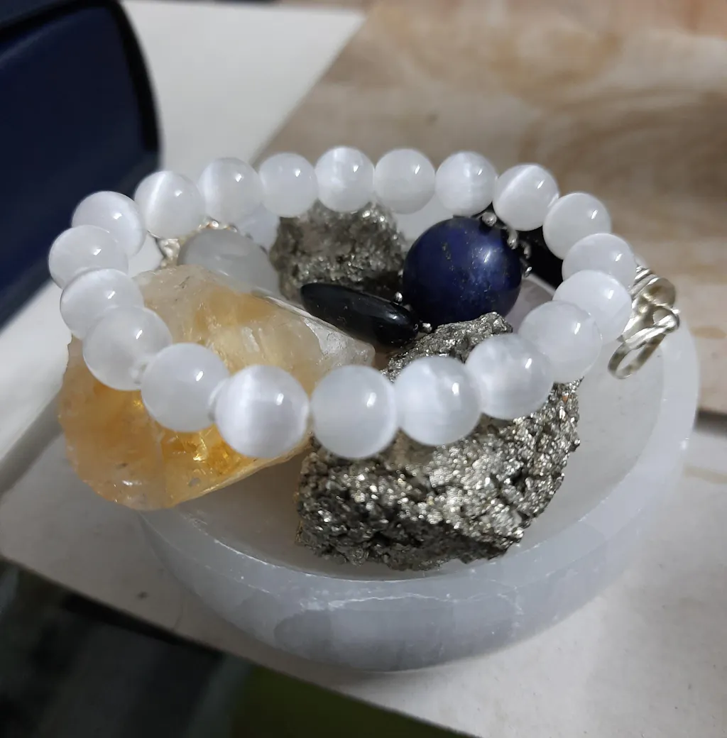 A pure and cleansing stone, Selenite clears energy blockages and brings peace, clarity, and spiritual protection.