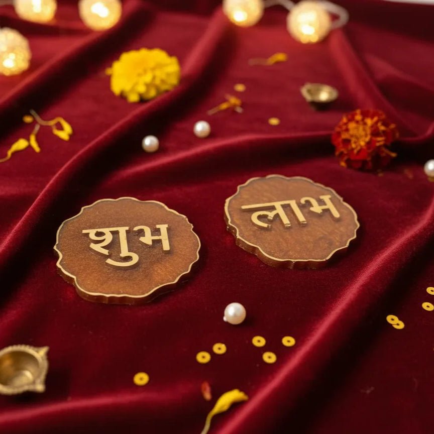 Invite positivity, celebrate tradition, and manifest abundance with this exquisite Shubh Labh resin piece.