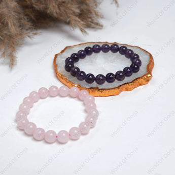 Find peace and joy with the harmonious combination of Amethyst and Rose Quartz. This thoughtfully crafted bracelet is designed to reduce stress, uplift your mood, and bring emotional balance, promoting overall happiness and tranquility.