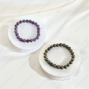 Find peace and joy with the harmonious combination of Amethyst and Rose Quartz. This thoughtfully crafted bracelet is designed to reduce stress, uplift your mood, and bring emotional balance, promoting overall happiness and tranquility.