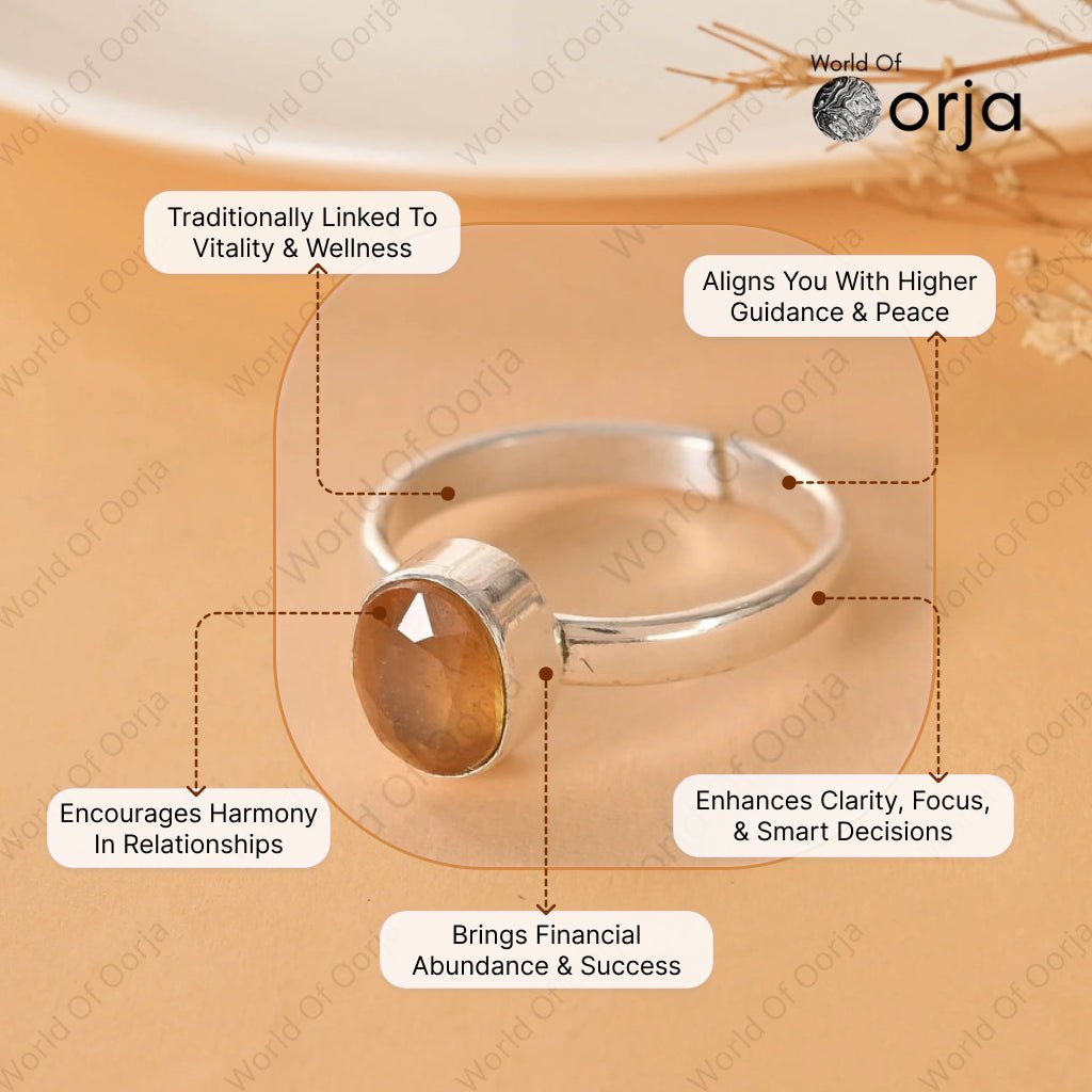 Wear the Yellow Sapphire Adjustable Ring to align with your highest self and attract success, clarity, and harmony into your life. Let the radiant energy of Pukhraj illuminate your path with wisdom, abundance, and serenity.